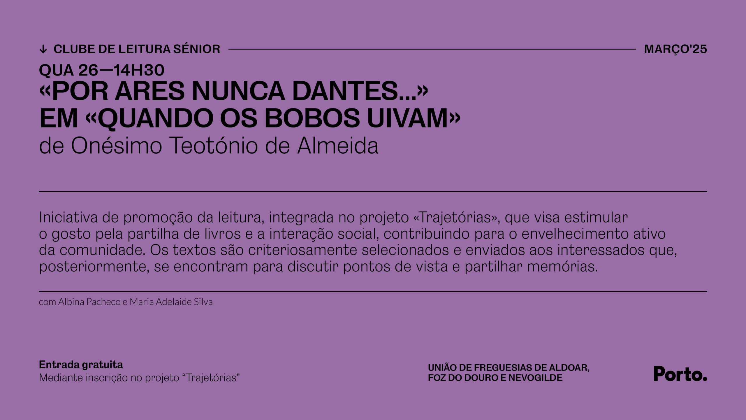 Entrada gratuita, mediante inscrição no projeto «Trajetórias».