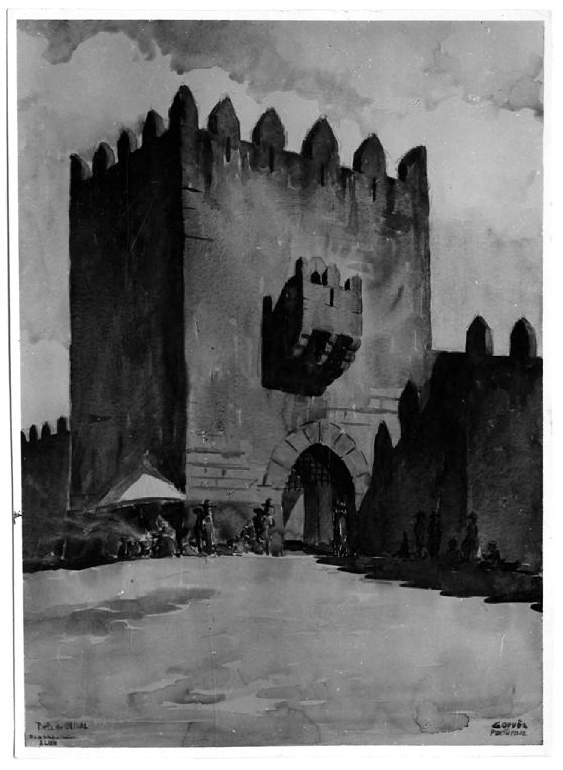 Reprodução de desenho aguarelado (1946) de Gouveia Portuense (1907—1976), representando a Porta do Olival da Muralha Fernandina Acervo do Arquivo Histórico Municipal do Porto