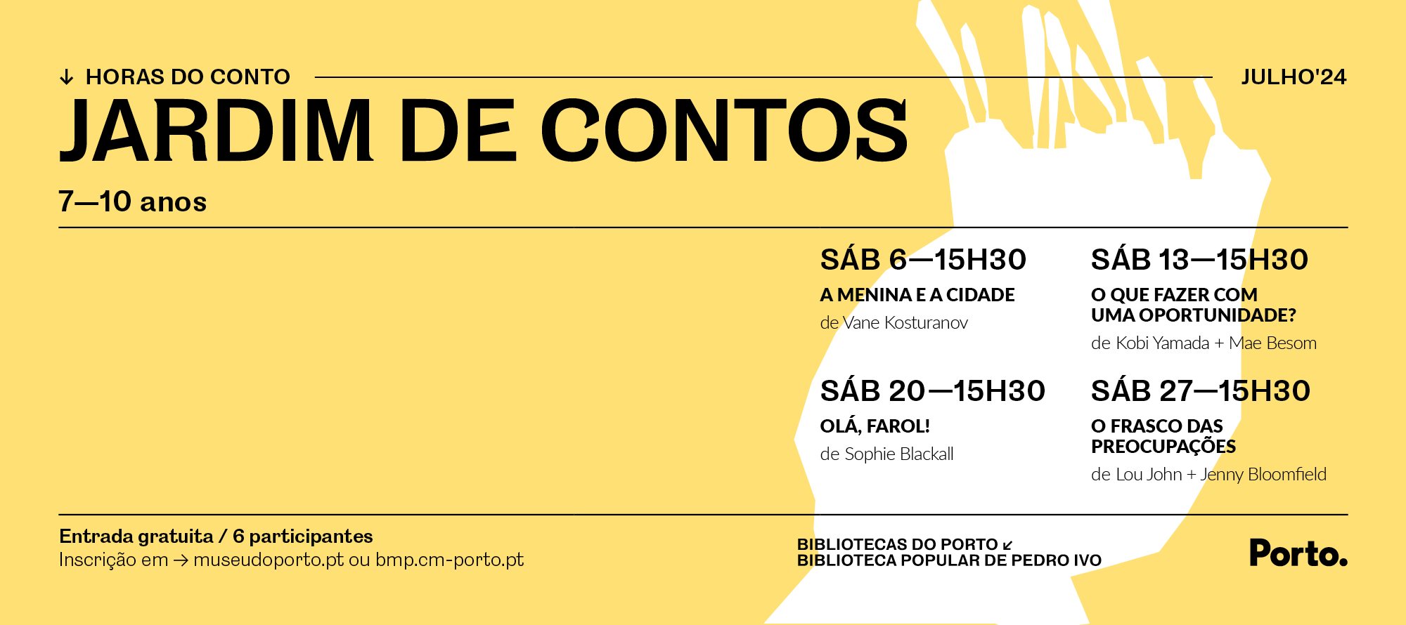 Semanalmente, aos sábados, convidamos os mais pequenos a usufruírem da Biblioteca Popular de Pedro Ivo e dos seus jardins, participando de momentos de leitura, seguidos de atividades oficinais, artísticas e criativas.