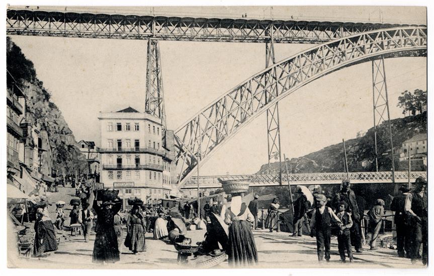 Cais da Ribeira e Ponte Luís I, ca. 1910. Bilhete-postal. Acervo do Arquivo Histórico Municipal do Porto